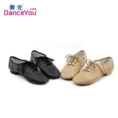 Oxford lace-up jazz shoe comprised of lightweight leather upper and non-slip EVA split-sole. Features flexible suede insole and absorbent cotton lining, neat under-toe pleats, full lining and cushioned heel sole for added comfort.