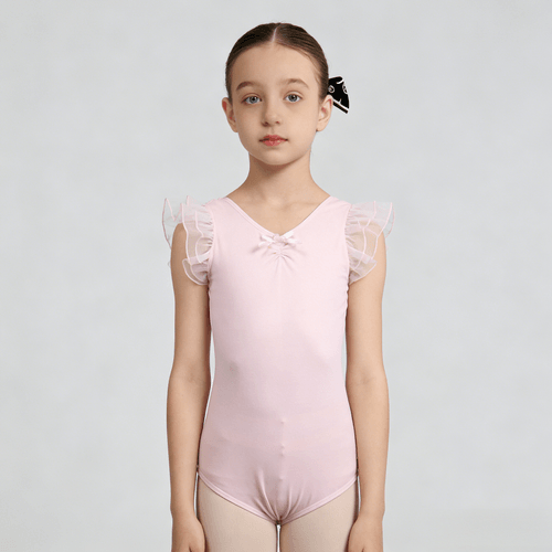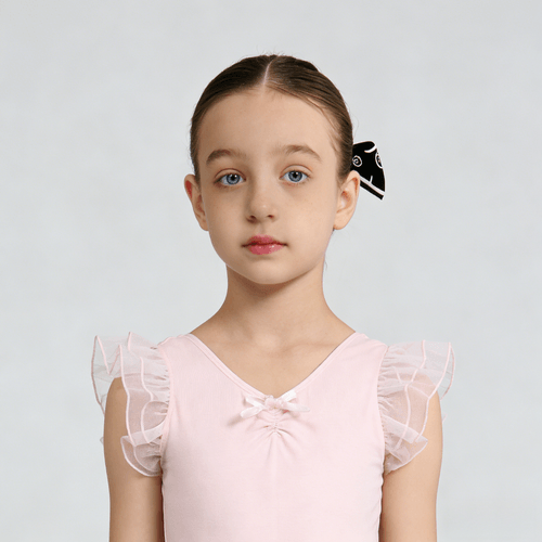 This short-sleeved ballet bodysuit with ruffled edges is made of 90% cotton and 10% spandex fabric, which is soft, comfortable and elastic.