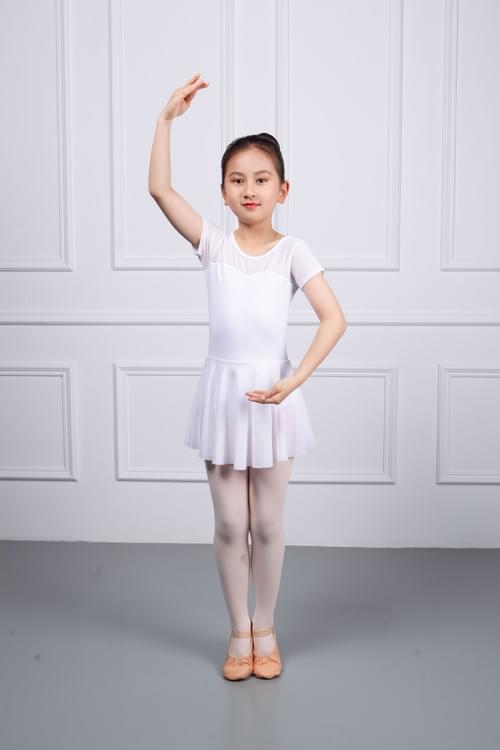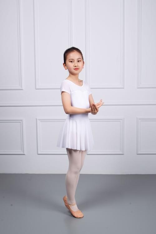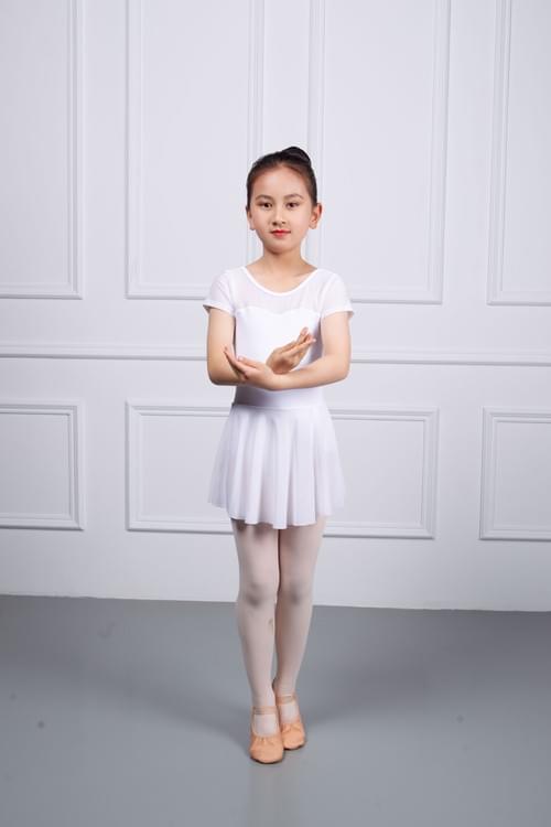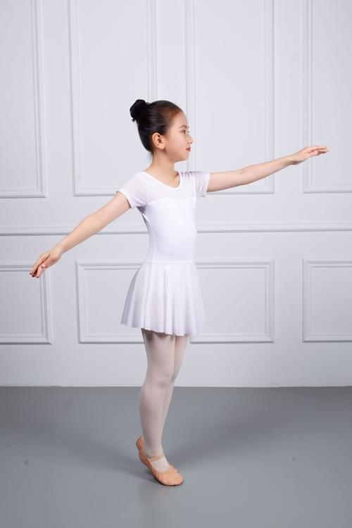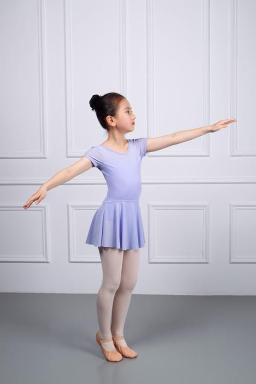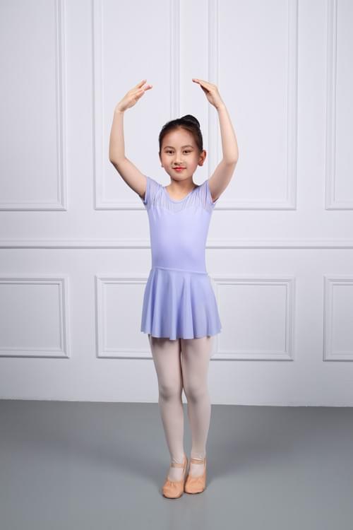 Available in sizes XSC110 to XLC150, and in light purple and white, it is a comfortable choice for children's ballet practice.