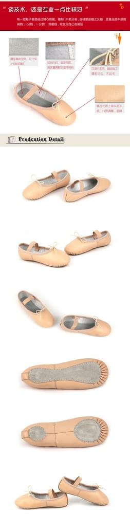 Hand-made ballet shoes made from supple and durable cow leather with cotton lining. Features full suede sole and elastic drawstring. No sewing is necessary with pre-attached arch elastic. Perfect color match to DANCEYOU children's ballet tights.